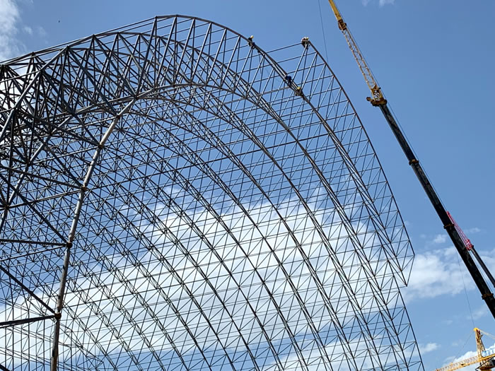 (2)网架加工前应对现场尺寸进行复测,确认无误后方可进行加工、安装;网架制作、运输、安装应遵守《空间网格结构技术规程》JGJ7-2010、《钢网架三亚螺栓球节点》JG/T 10-2009、《钢网架三亚螺栓球节点用高强度螺栓》 GB/T 16939-2016、《三亚钢结构三亚工程三亚施工规范》 GB50755-2012、《三亚钢结构三亚工程三亚施工质量验收标准》 GB50205-2020。